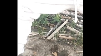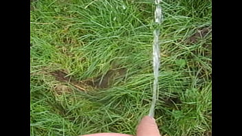 Petting my pale bitch as she pisses everywhere outside on the grass | close up pussy | collar leash